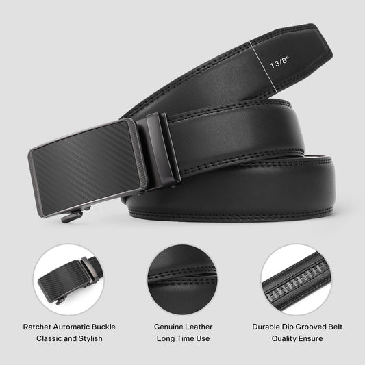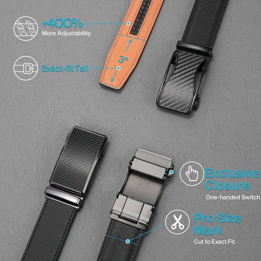 GAEKEAO Leather Ratchet Belt for Men Automatic Adjustable Click Buckle Belts for Dress Casual Trim to Fit with Gift Box