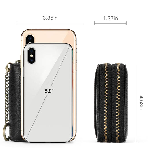 GAEKEAO Credit Card Holder Wallets for Women RFID Blocking Small Genuine Leather Card Case Wallet Double Zipper Accordion Wallets