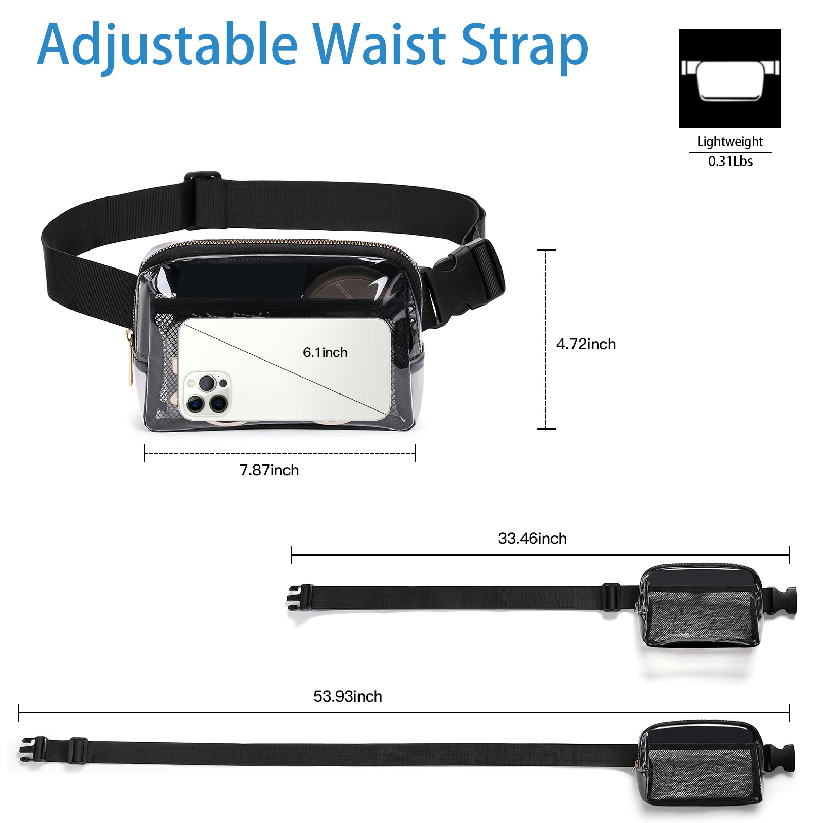 - 【Stadium-Approved Convenience】-This waterproof fanny pack meets stadium guidelines, making it perfect for music festivals, sports events, and more. Breeze through security checks with this clear, compliant bag.