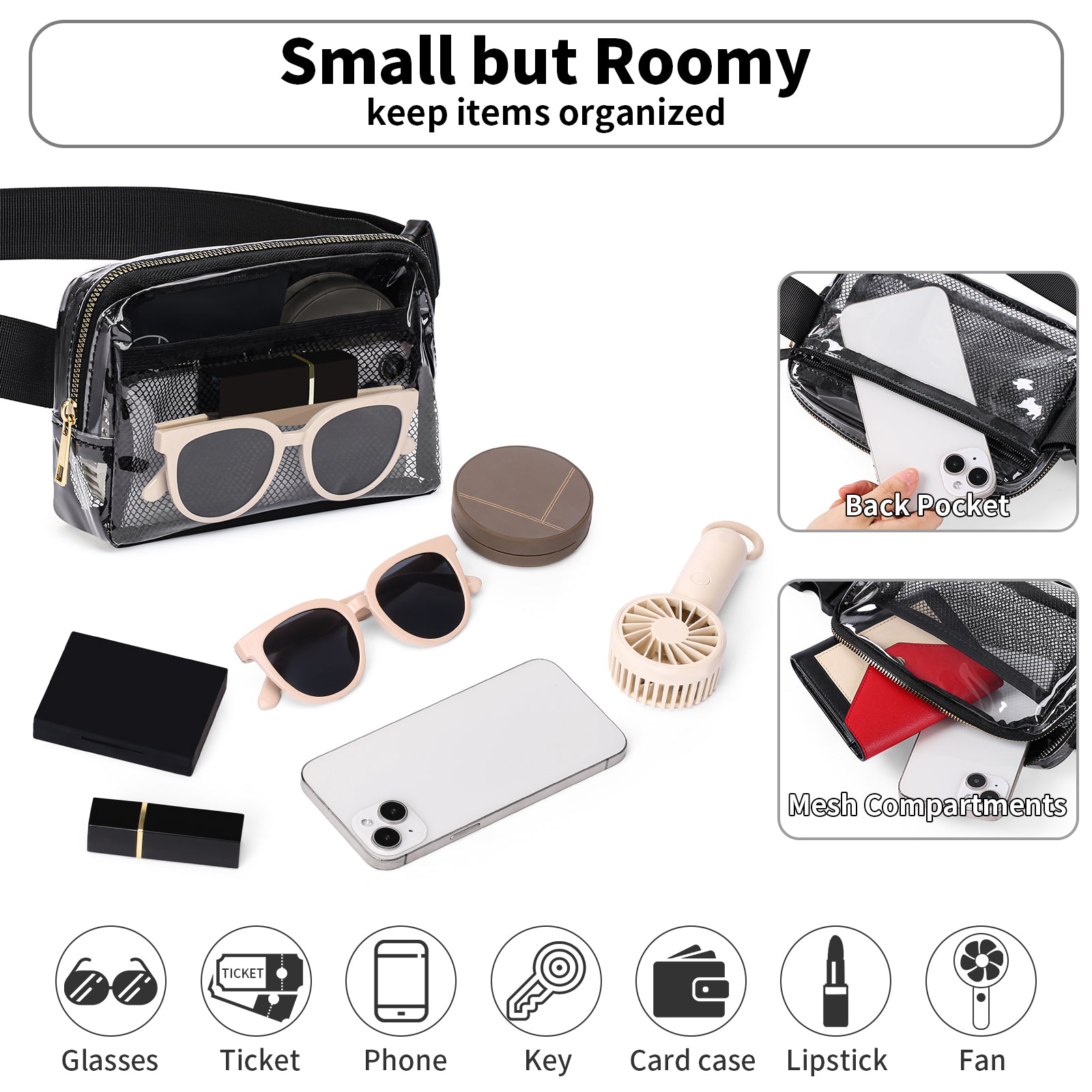 - Types:Fanny Pack / Concert Bag / Clear Stadium Bag / Belt Bags / Chest Bag / Crossbody Bag / Sling Bag /Crossbody Purse / Travel Bag / Sling Backpack / Hiking Backpack